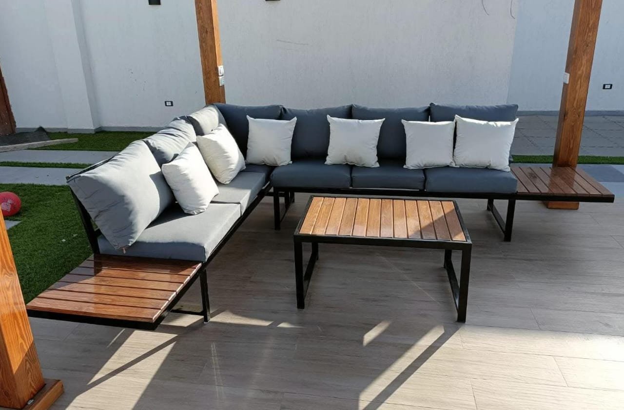كنه ستيل حديد مكشوف وخشب زان لون المعدن اسود وابيض والشلت جاكوار